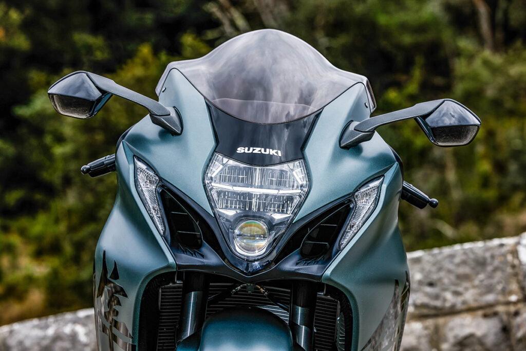 El estilo de la carrocería transmite intencionalmente una imagen moderna de rendimiento avanzado y características efectivas, al tiempo que hereda fielmente la silueta cortavientos y el aspecto general por los que es famosa la Hayabusa.